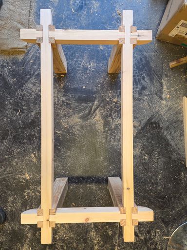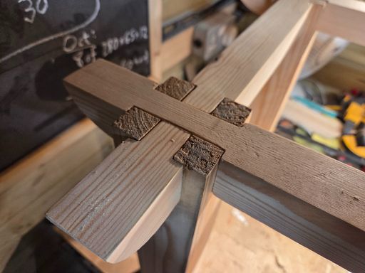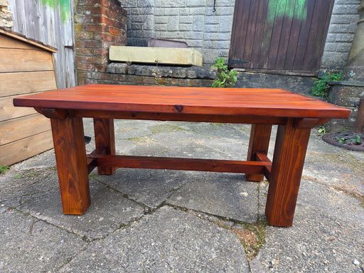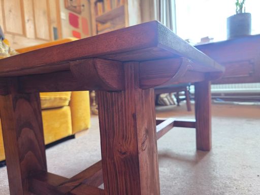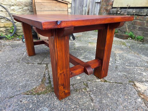 Handmade coffee table built from oak fenceposts